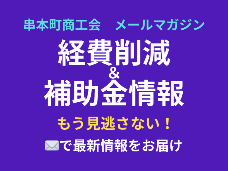 続きを読む串本町商工会の会報をメールでもお届けします。補助金情報を見逃さず、経費削減にも繋がるなど、事業に役立つメリットが沢山。パソコンが苦手な方も簡単な登録で始められます。最新情報をあなたの手元に。