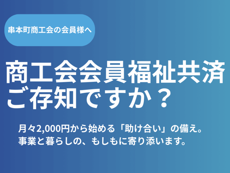 続きを読む串本町の事業主の皆さん、月々2,000円からの商工会福祉共済をご存知ですか?ご自身や従業員、ご家族の万が一の備えとなり、掛金は経費にも計上できます。手頃で手厚い保障の魅力を解説します。