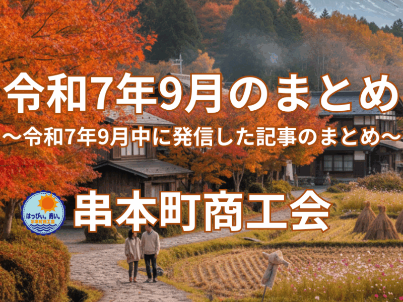 続きを読む串本町商工会が令和7年9月に発信した情報を総まとめ。事業継続力強化計画セミナー、最低賃金改定に伴う助成金、創業支援など、事業者の皆様に役立つ最新情報が満載です。