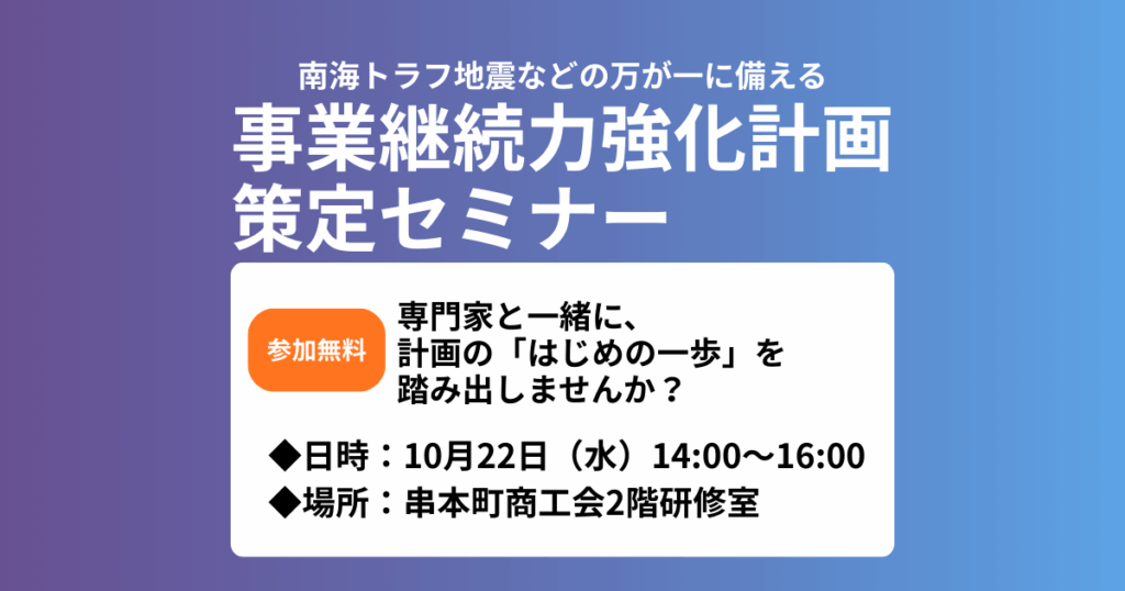 「【事業継続力強化計画】南海トラフ地震に備え、国があなたのお店を支えます」
