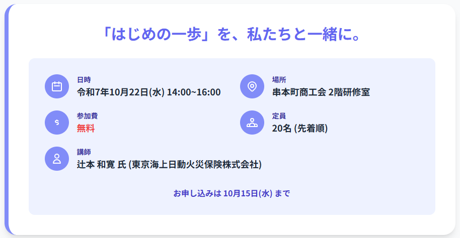 「何から始めればいいの?」を解決する無料セミナーの詳細です。