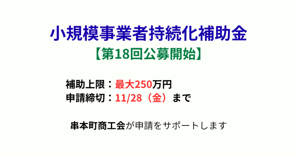 さて、多くの方が待ち望んでいた「小規模事業者持続化補助金」の第18回公募が10月3日(金)からスタートしました。新しい挑戦をしたいけれど、資金面で一歩が踏み出せない…、パソコンでの申請は難しそう…、そんなお悩みはありませんか?