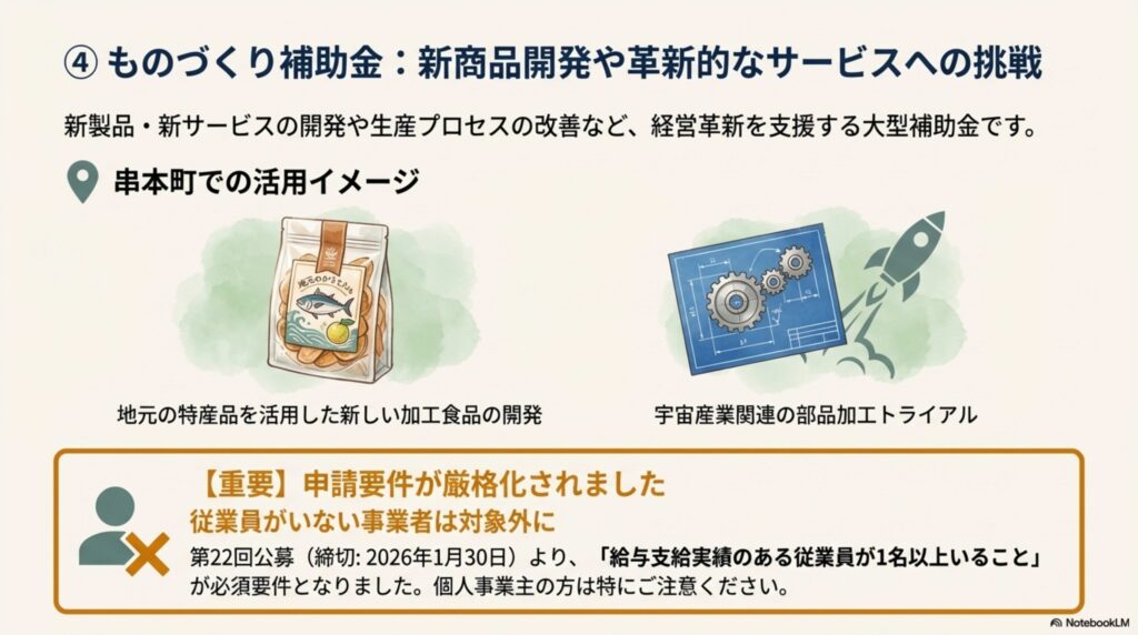 第22回公募(締切:2026年1月30日)からは、申請要件として「給与支給実績のある従業員が1名以上いること」が必須となりました。