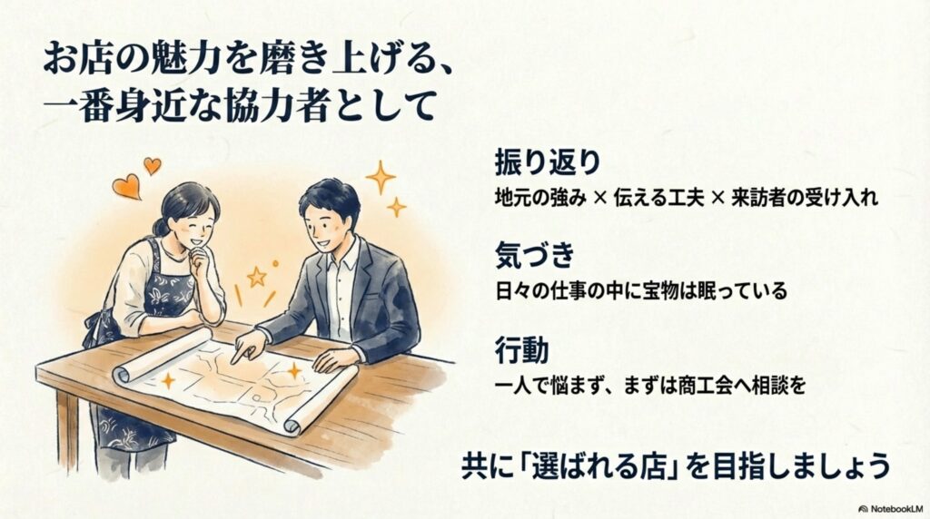 もし迷ったら、いつでも私たち商工会に声をかけてくださいね。