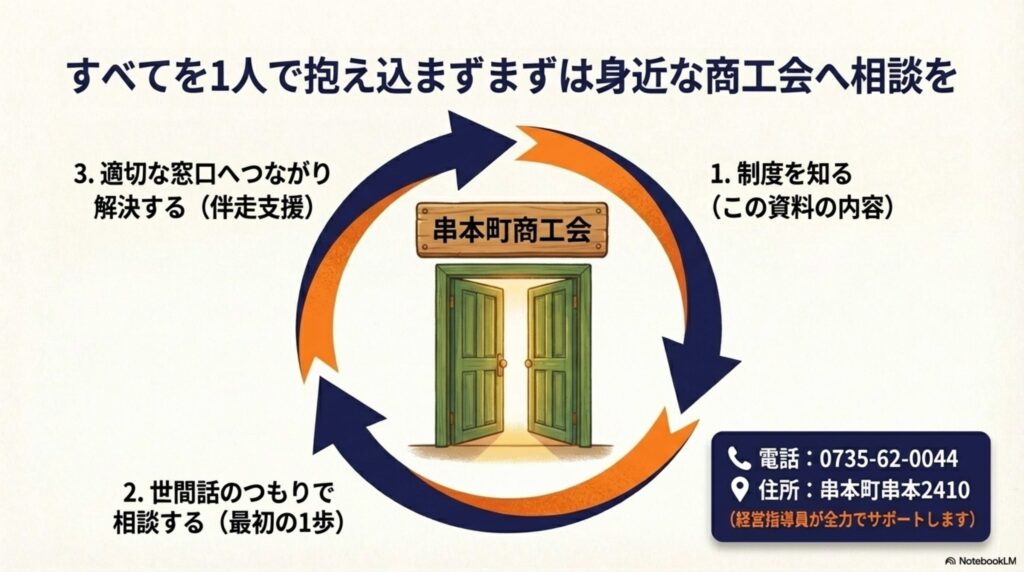 「新しいことを始めるのは難しそうだな」と迷われたら、一人で抱え込まずに私たちにご相談ください。まずは身近な商工会に、世間話のつもりで話しかけてみることが、課題解決への最も確実な第一歩です。