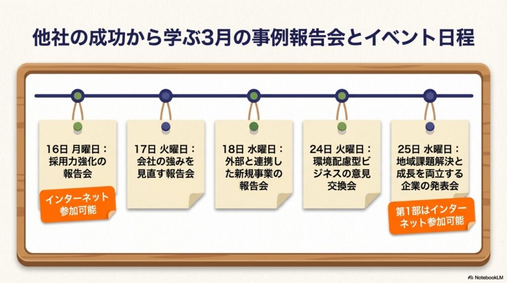 他のお店や会社がどんな工夫でピンチを乗り越え、成長しているのか、少し気になりませんか?直前のご案内となってしまいましたが、来週から和歌山市内で注目の成果報告会やイベントが目白押しです。