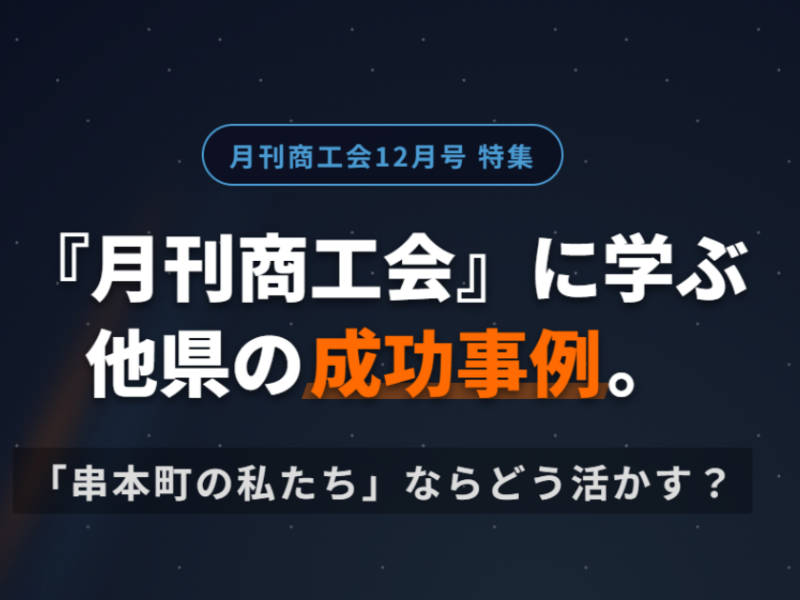 『月刊商工会12月号』の特集事例(経営計画、事業承継、DX、災害対策)を、串本町の事業者向けに分かりやすく解説。スペースポート紀伊のロケット需要や南海トラフ地震への備えなど、今すぐ役立つ「4つの生存戦略」を商工会が提案します。