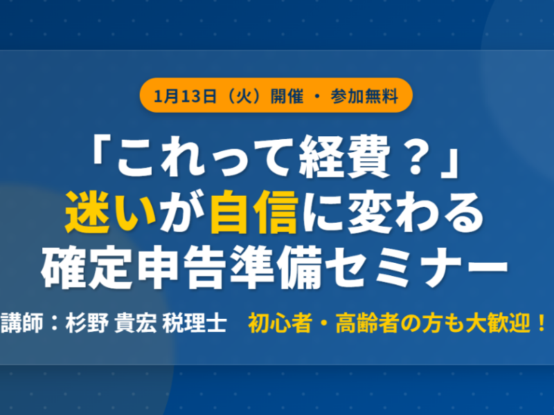 串本町商工会主催「確定申告準備セミナー」のお知らせ。1/13(火)開催。経費の判断基準や控除のポイントを、若手税理士・杉野先生が分かりやすく解説します。初心者の方も大歓迎。自信を持って申告準備を始めましょう!参加無料です。