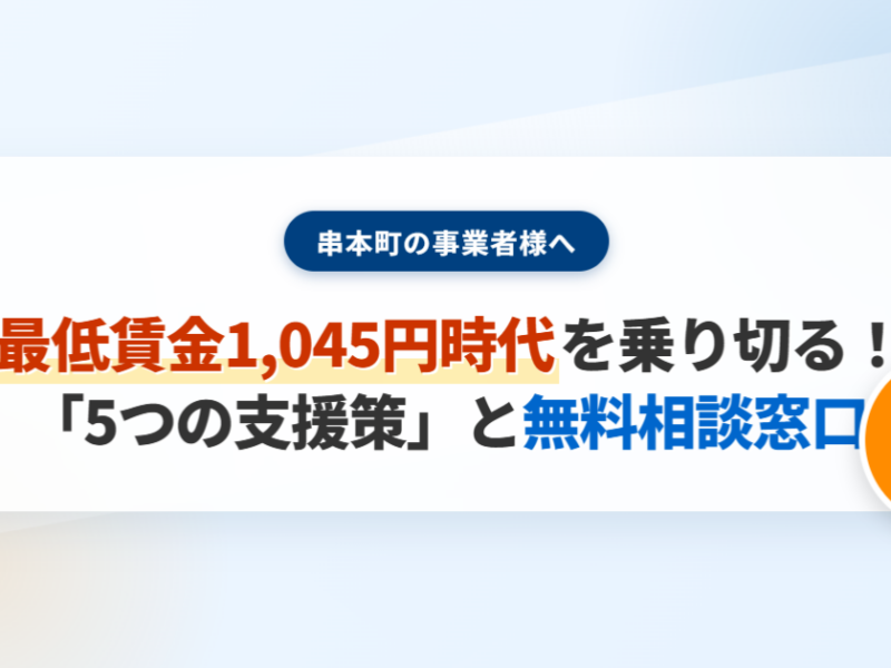 和歌山県の最低賃金1,045円時代を乗り切る!串本町の事業者様へ、デジタル化・AI導入補助金など「5つの支援策」と「働き方改革推進支援センター」の活用法を徹底解説。1月8日の無料相談会情報も掲載。