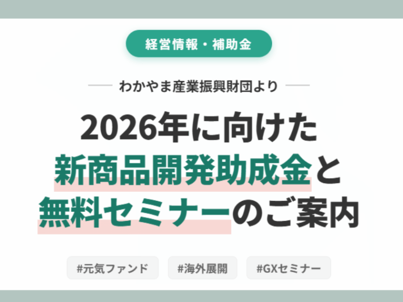 【わかやま産業振興財団より】2026年に向けた新商品開発助成金と無料セミナーのご案内