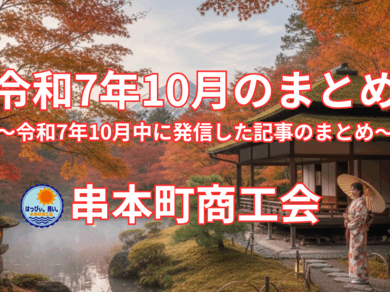 串本町商工会が令和7年10月に発信した重要情報を総まとめ。年末調整の160万円の壁、最低賃金1,045円対応、小規模事業者持続化補助金、融資相談会、事業継続力強化計画など、地域事業者の経営課題解決に役立つ最新支援制度を網羅的に解説。