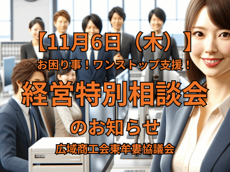 11月6日、串本町商工会で無料の経営特別相談会を開催。資金繰り、事業承継、働き方改革に加え、新たに災害に備える「事業継続力強化計画(ジギョケイ)」の専門窓口も開設。あなたの経営の悩みをワンストップで解決します。